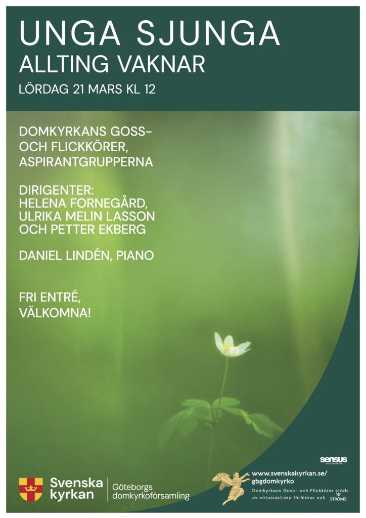 UNGA SJUNGA 21 mars 2026 16 mars 2026 av support@musikidomkyrkan.seUNGA SJUNGA 21 mars_allting vaknarLadda nerUpptäck mer från Göteborgs Domkyrkas Goss- och FlickkörerPrenumerera för att få de senaste inläggen skickade till din e-post. Skriv din e-post … Prenumerera